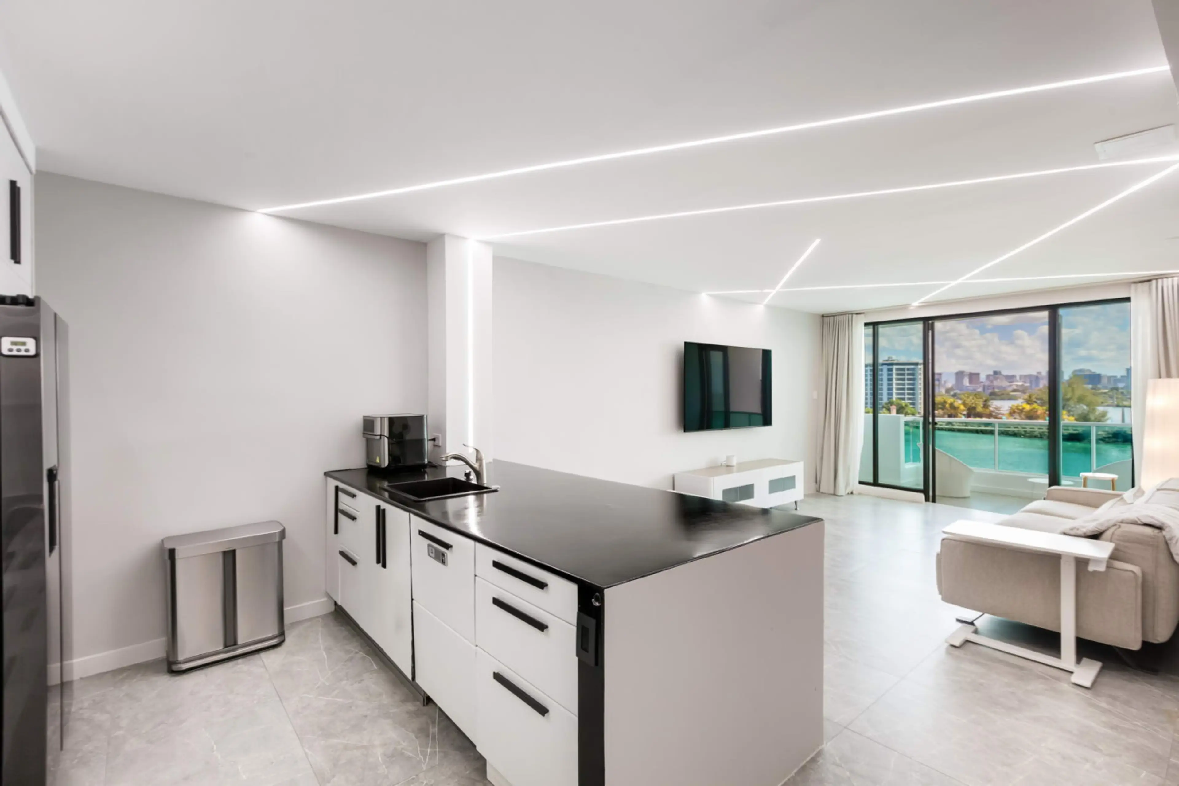 Outdoor Spaces Expansive balconies offer panoramic views of the coastline and city skyline. The resort-style pool is surrounded by lush greenery and comfortable loungers, creating a relaxing atmosphere. For added peace of mind, the property includes a generator capable of powering full air condition...